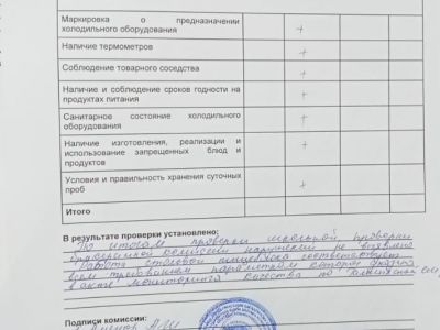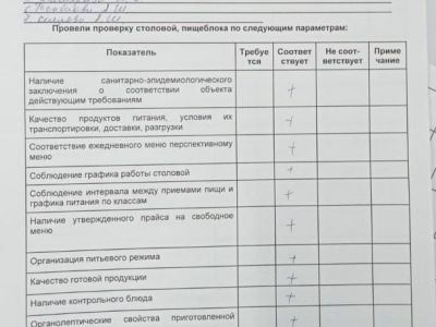 Протокол №1 проверки школьной столовой бракеражной комиссией